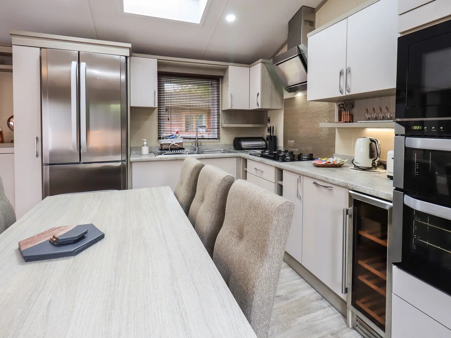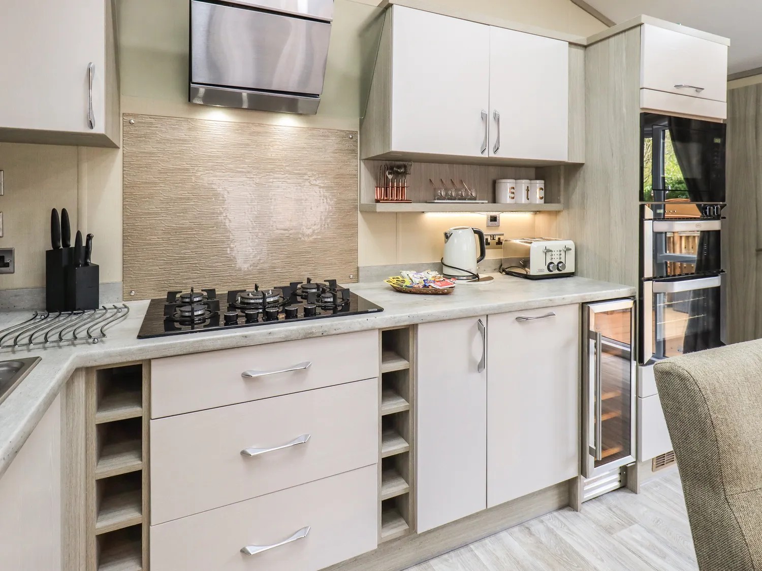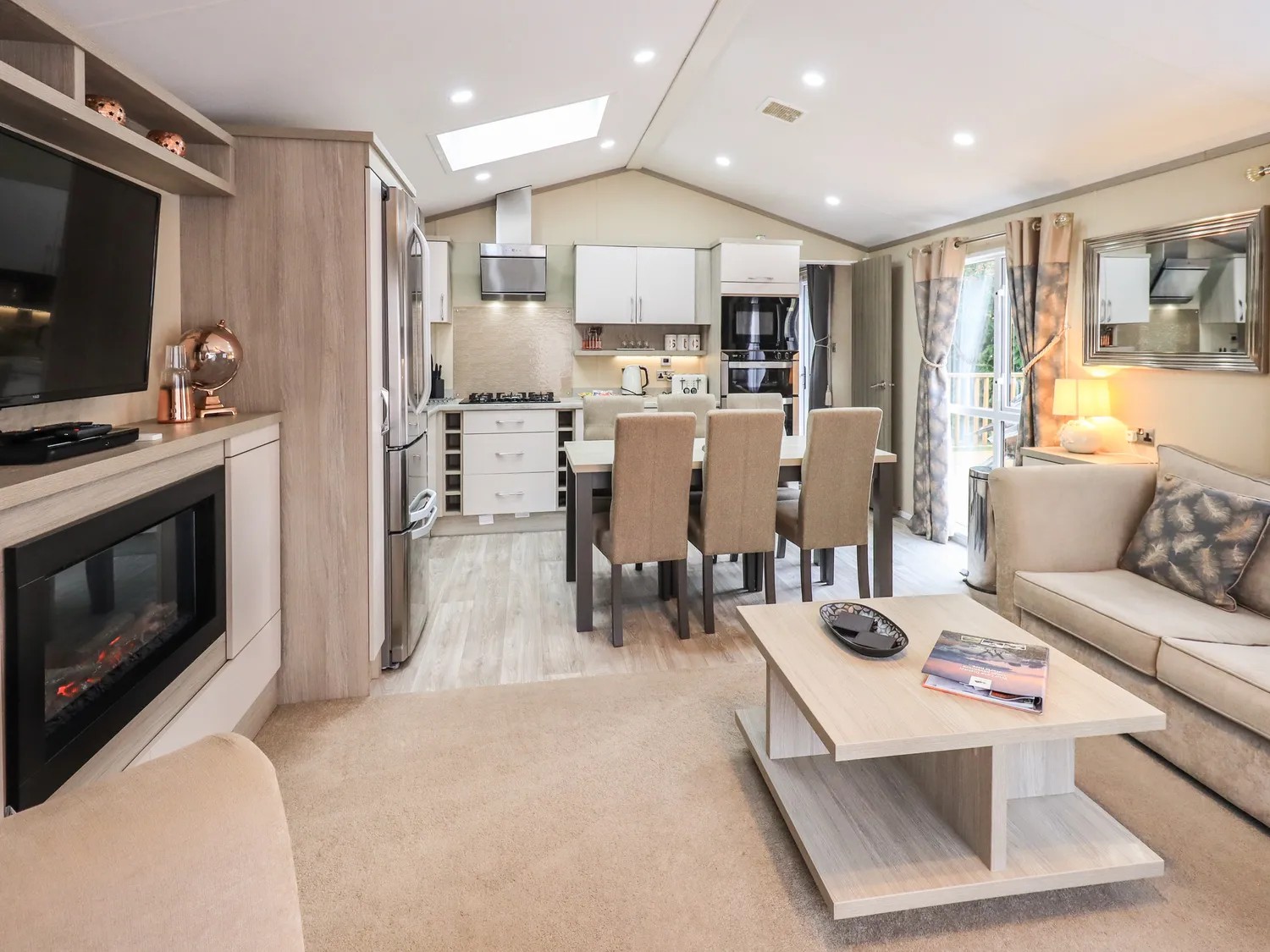 Our modern lodge offers all the comforts you need and the perfect base for your Lake District holiday, situated just a one minute walk from the main facilities and a three minute walk to the lake, placing you right at the heart of White Cross Bay. After a day of exploring, unwind on the large west facing decking with comfortable seating, ideal for catching the late afternoon sun. The property includes two private parking spaces, perfect for couples or families travelling separately. Inside, this charming two bedroom lodge combines modern style with rustic charm, featuring two spacious bedrooms with large windows that flood the rooms with natural light and offer countryside views, along with two well appointed bathrooms with modern fixtures. The inviting living room includes a cosy fireplace, perfect for evenings with family and friends, while the fully equipped kitchen provides contemporary appliances, ample storage, and a welcoming dining area. A balcony with outdoor dining furniture offers a tranquil spot to enjoy fresh air and greenery. The location is ideal for outdoor enthusiasts with easy access to the Lake District National Park for hiking, cycling and nature walks, as well as convenient transport links to nearby towns. While the lodge does not feature a private hot tub, guests can access the indoor pool, jacuzzi, sauna and steam room at Parkdean for an additional cost, just two minutes away. Please note we accept a maximum of four adults, though bookings for two adults and three children are also welcome.
